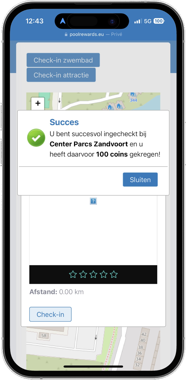 📲 Check-in bij de ingang van een deelnemend zwembad met je telefoon.